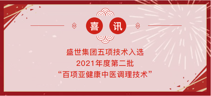 喜訊 | 盛世集團五項技術(shù)入選“百項亞健康中醫(yī)調(diào)理技術(shù)”
