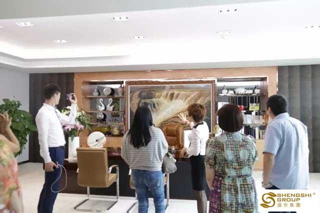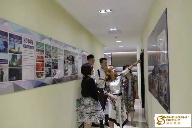 盛世總部一片熱鬧景象;盛世行政家人以最飽滿的激情與狀態迎接并服務貴賓們;貴賓們陸續參觀總部文化墻、觀看企業視頻、了解各類文化手冊…