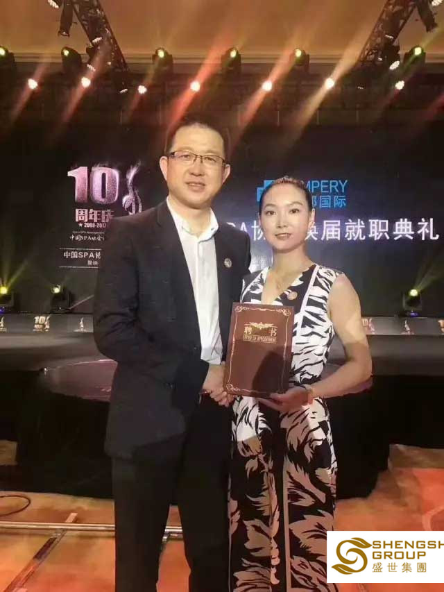 5月5日-6日,中國SPA協會十周年慶典晚宴暨換屆就職典禮在上海佘山索菲特酒店隆重舉行!盛世集團總裁吳培莉女士,憑借多年在SPA美容行業的杰出貢獻,在中國SPA 協會換屆就職典禮上受聘為中國SPA 協會(香港)副秘書長。