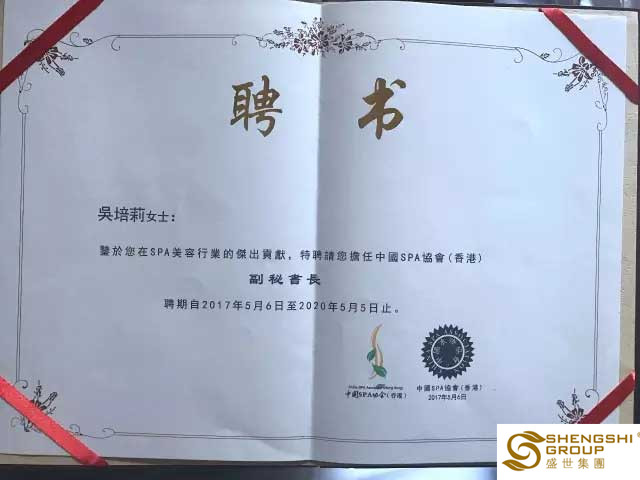 熱烈祝賀盛世集團總裁吳培莉女士受聘擔任中國SPA 協會(香港)副秘書長 2017-05-06