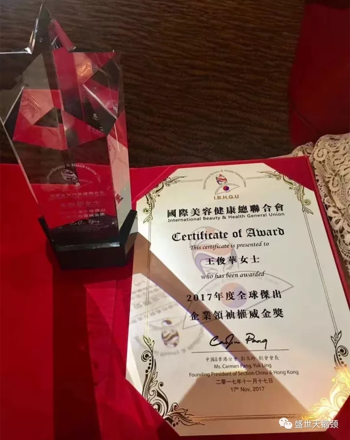 11月17日,國際美容健康總聯(lián)合會(huì)第三屆BHL證書頒授典禮暨技能展示大匯演,在香港亞洲國際博物館隆重召開。在此次頒授盛典上,盛世集團(tuán)董事長王俊華女士榮獲“2017年度全球杰出企業(yè)領(lǐng)袖權(quán)威金獎(jiǎng)”。