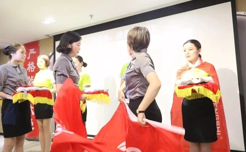 緊接著,臺上的家人們進行了莊嚴的入職宣誓!戰(zhàn)旗披肩,臺上的家人們猶如一個個戰(zhàn)士一般奮勇當先,英姿煥發(fā),宣誓堅定而有力!從此刻起,就成為盛世人了,我們致力把職業(yè)當事業(yè),把使命當生命,把信念當信仰,把企業(yè)文化深深注入我們的骨子里,我們的血液里,并為我們共同的夢想而終身奮斗!