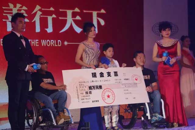 盛世華美天使公益基金自大賽初選開始就一直與參選佳麗共同為慈善公益活動奉獻自己的力量,繼半決賽為變形勵志人那蘇圖現場捐獻十萬元外,本次總決賽現場為殘疾人樂隊林文超損贈十萬元,助力他完成音樂夢想。他對生命的那份執著,對夢想的那份堅持,讓所有人為之動容。